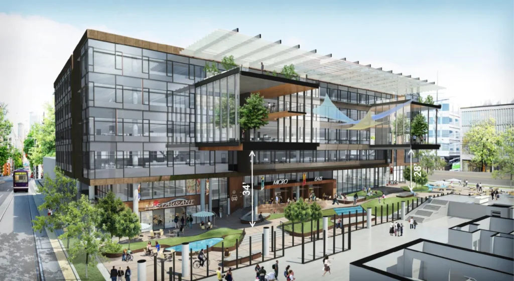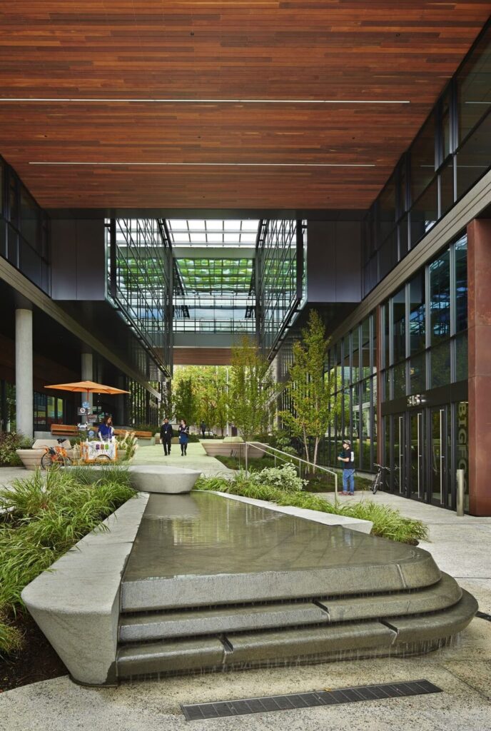 This 2-building project includes a protected outdoor living room which links the two buildings vertically and horizontally.